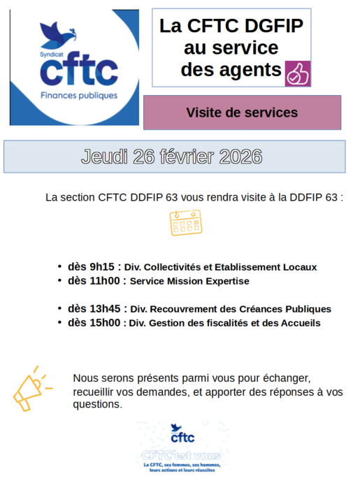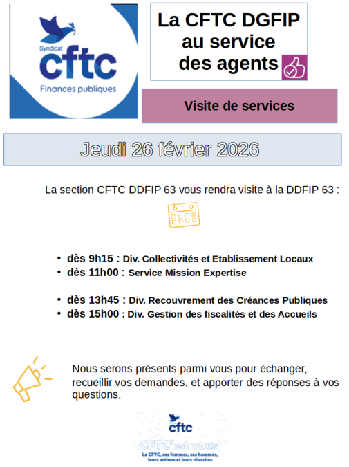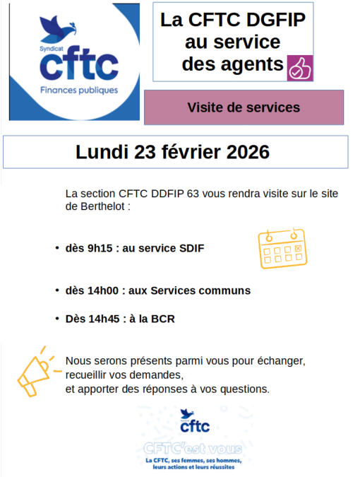 Les représentants de la CFTC viendront rendre visite aux agent(e)s :